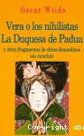 Vera o los nihilistas + La duquesa de Padua : y otros fragmentos de obras dramáticas sin concluir [text imprès] / Oscar Wilde (1854-1900), Autor . - Madrid : Biblioteca Nueva, 2002 . - 198 p.. - ( Biblioteca Oscar Wilde) . ISBN : 978-84-7030-962-5 http://es.wikipedia.org/wiki/Oscar_Wilde Idioma : Castellà ( spa)